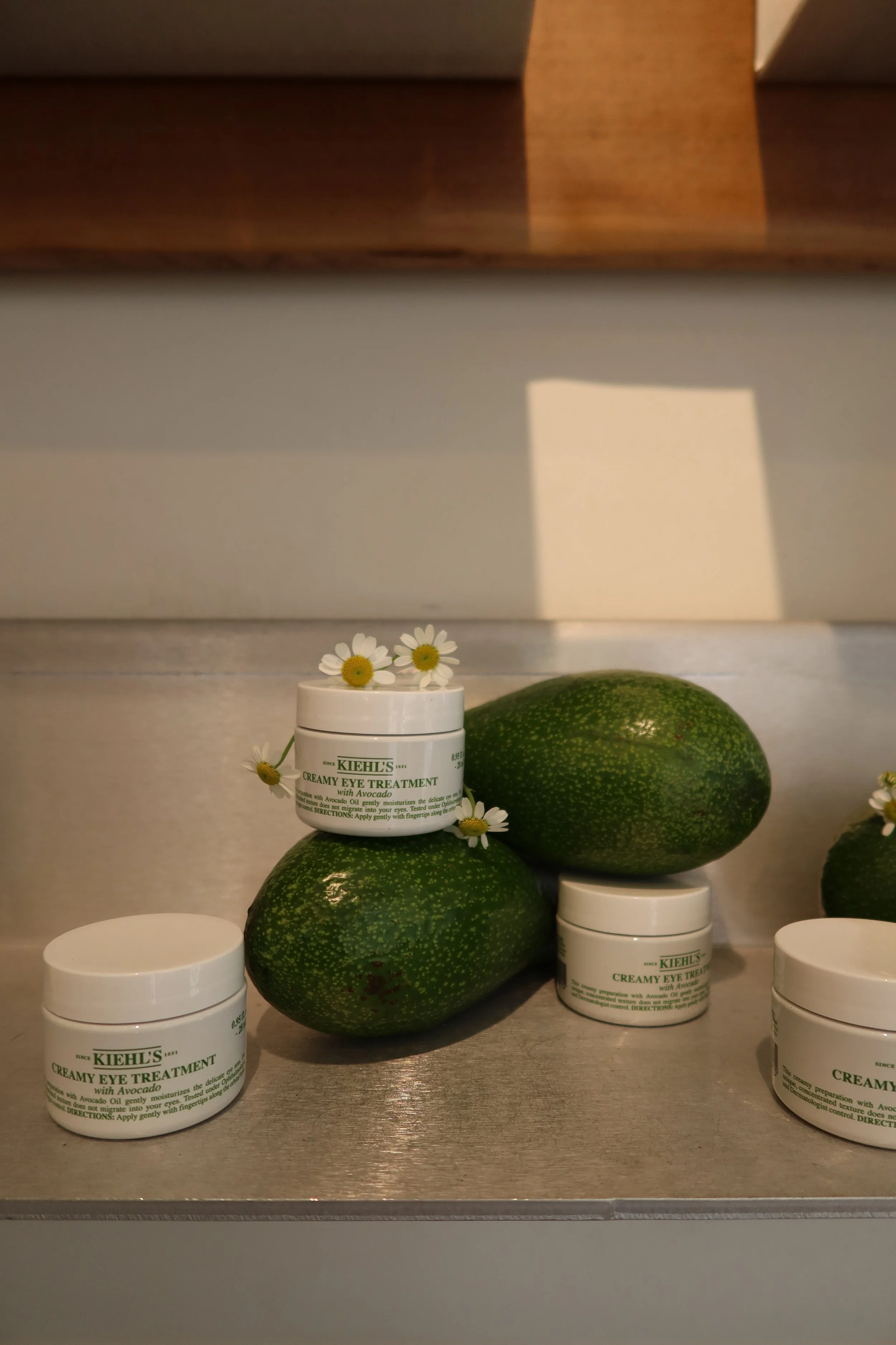Materiality & Brand Values: To highlight Kiehl’s expertise in high-quality ingredients, I designed product displays that integrated fresh fruits and organic materials. Furthermore, we activated the brand’s Sustainability value by upcycling empty product bottles into bespoke flower vases—a subtle yet powerful nod to Kiehl's recycling mission.